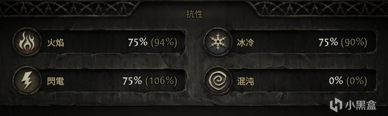 前期通貨喫緊的情況下,均勻加三抗各達到30-50,配合天賦中的防禦相關點數,就能爽刷了,刷的時候會掉落通貨,再去市集提升自己,把抗性堆滿,除了一些噁心的自爆怪和少數混沌傷害小怪,基本可以異界游泳了(打完頭領千萬先滾走,特別是很多火系自爆傷害極高,只能眼看一地金燦燦,手點復活)如圖所示雖然我有抗性超過100,但限制最高75,不過不怕高,怕不夠,隨着地圖深入還會削弱抗性