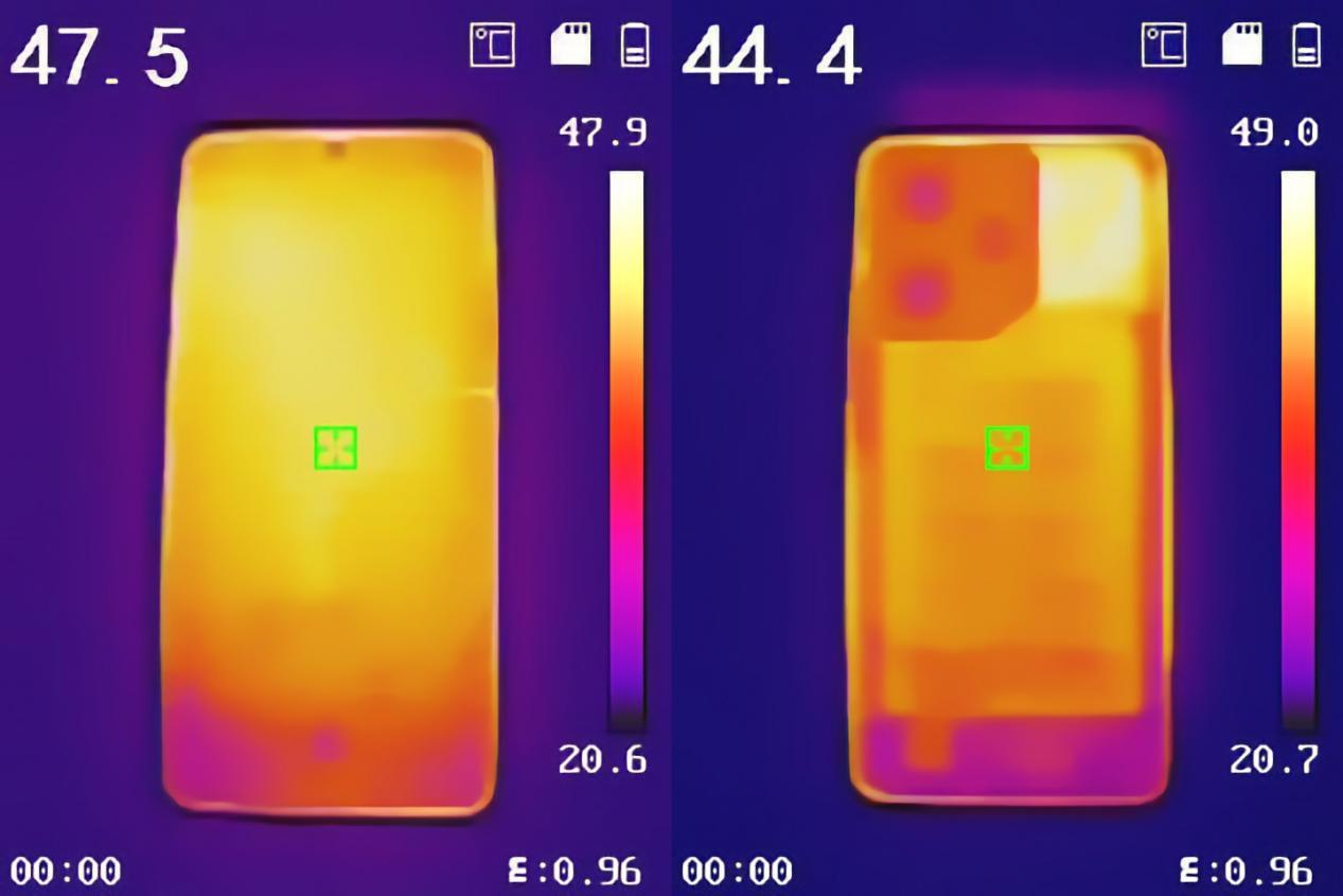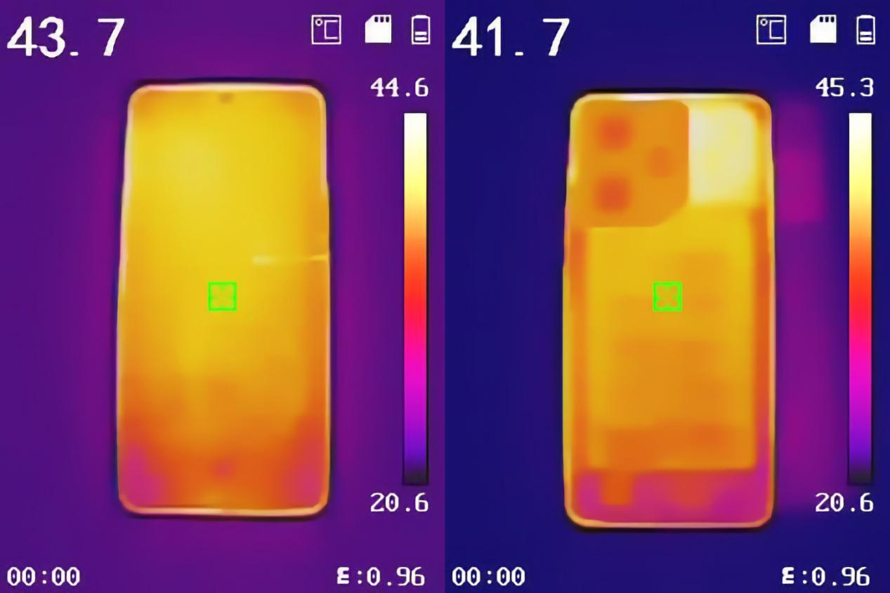 30分钟后,机身背面温度要高于正面,最高温度为45.3摄氏度,正面最高温度为44.6摄氏度。