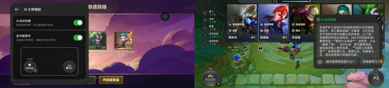 除《王者荣耀》外,真我Neo7还在《金铲铲之战》中加入了AI实时攻略和金币精算师功能,可智能识别金币数量,辅助玩家进行游戏经验购买操作。
