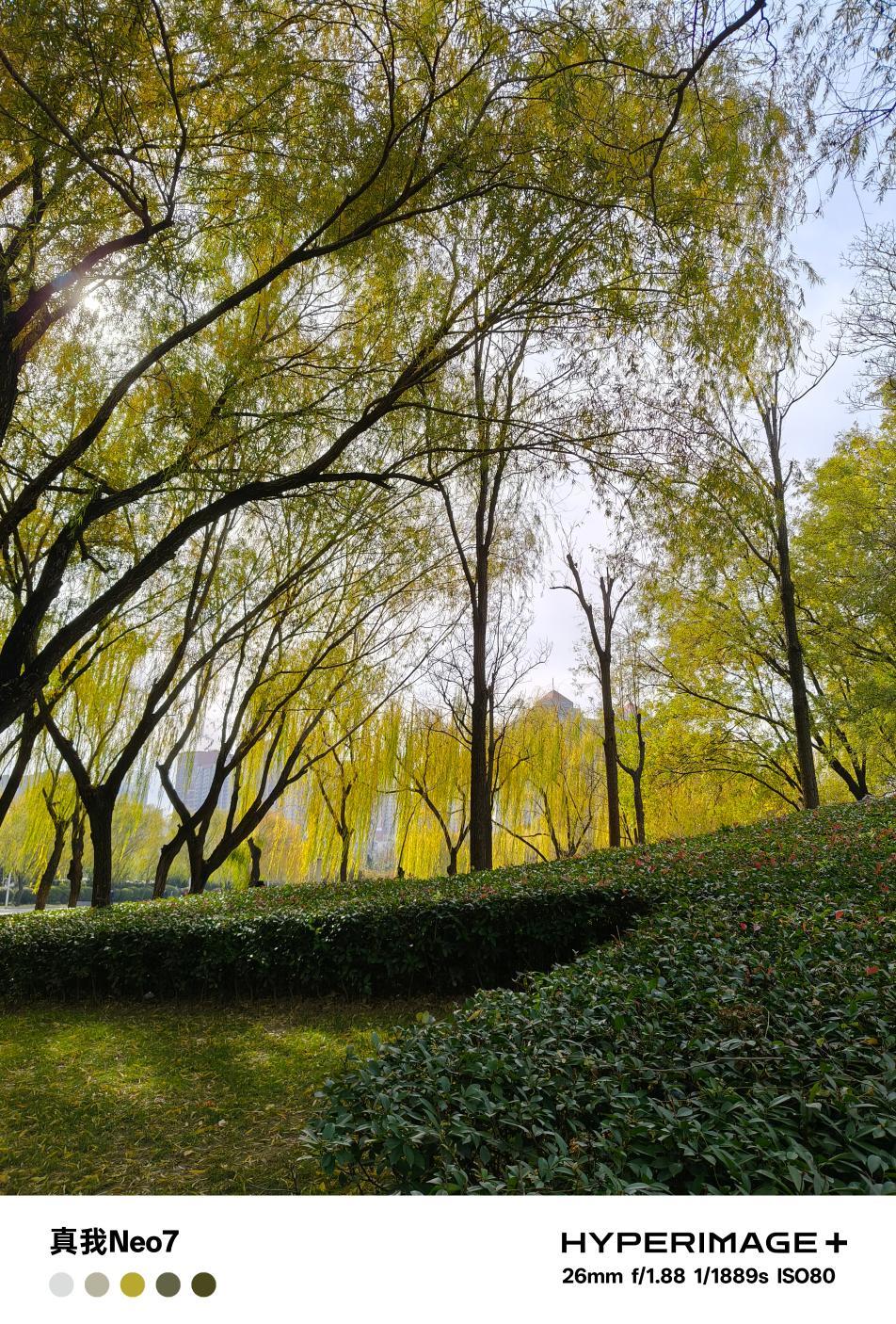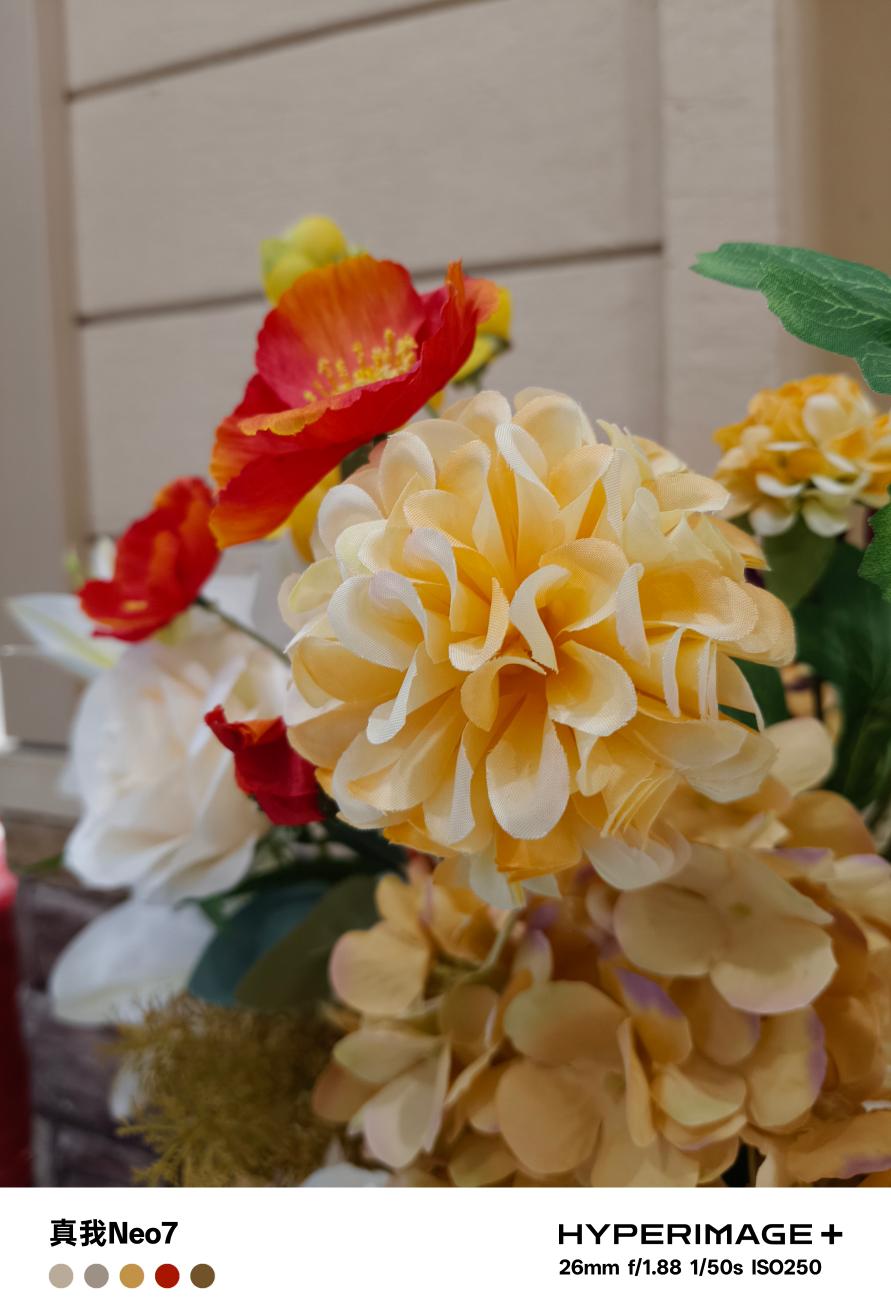 拍照并不是真我Neo7的强项,也不是其核心卖点。但是realme依旧为真我Neo7配备了5000万像素主摄(索尼IMX882),光圈f/1.8,支持OIS光学防抖。同时还有一颗800万像素超广角镜头,光圈f/2.2,视场角为112度,前置为1600万像素单摄。