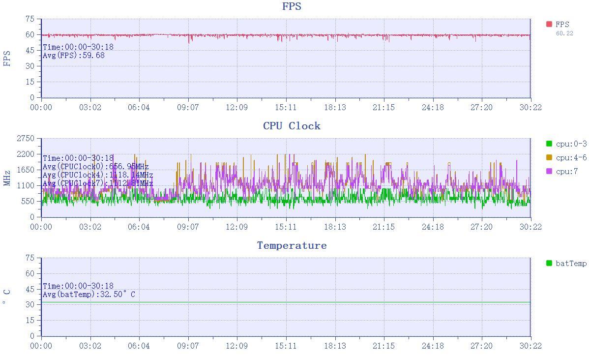 需要注意的是,测试游戏时,由于办公室里开了暖气,室温在30度左右,所以,游戏部分的机身温度表现可能会偏高。