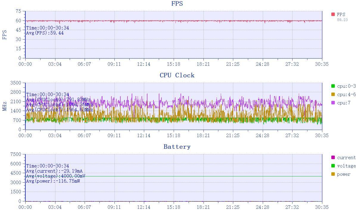 《绝区零》这款游戏,真我Neo7长时间运行起来也没什么压力。光影广场跑图30分钟,画面平均帧率为59.44 FPS,跑图过程中,并未出现画面卡顿、掉帧的情况。