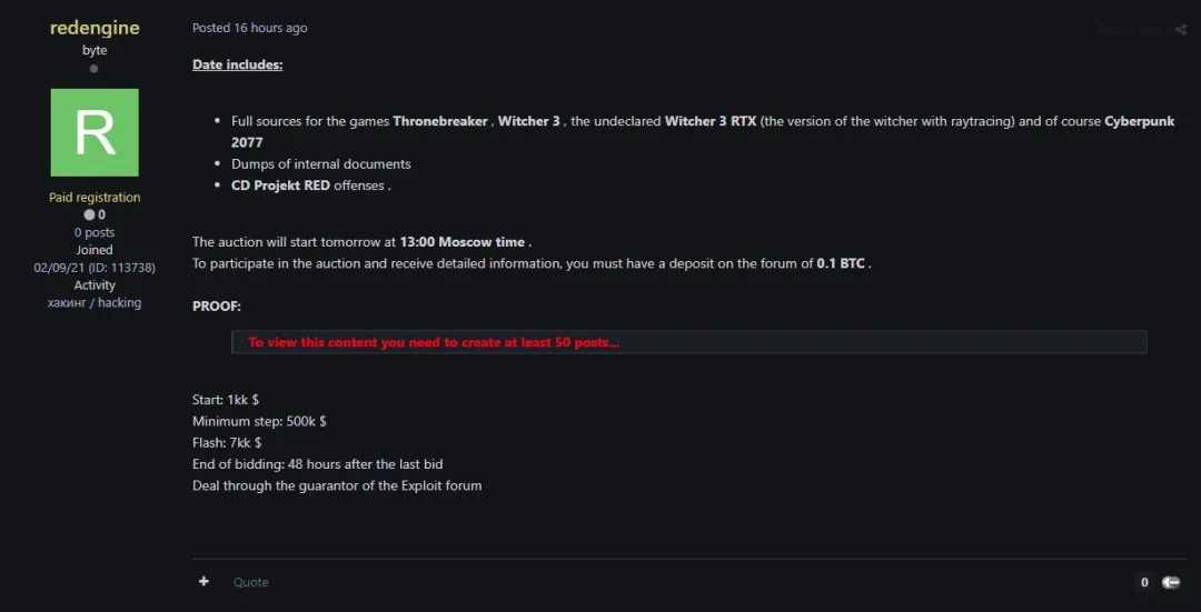 2021年初CDPR遭黑客入侵,《賽博朋克2077》《巫師3》源代碼被拍賣
