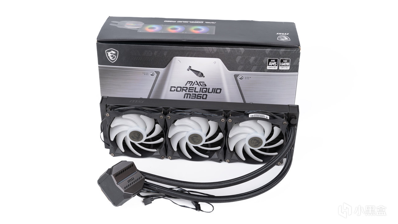 为了更好压制9700X发挥最大性能,搭配微星MAG CORELIQUID M360迫击炮水冷,尤其是冷头造型和迫击炮主板设计风格完全一致,而且带有相当简约的ARGB灯,它拥有高性能水泵、冷排和微凸铜底等设计,官方宣称能完美压制重载状态的i9-13900K,对于能耗比出色太多的9700X就更不在话下了。