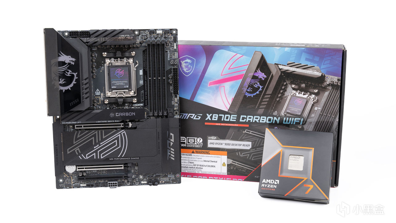 搭载测试CPU是锐龙7 9700X,配备主板则是微星MPG X870E CARBON WIFI暗黑,正如暗黑系列家族设计语言一样——X870E暗黑的装甲上完美融入大量碳纤维元素,而且I/O装甲上的黑镜龙纹观感相当特别。主板用料也是相当给力,在8层服务器级PCB之下,供电规格达到了18+2+1相,其中CPU VCORE部分MOS是110A,完美搭配上下一代旗舰无压力。