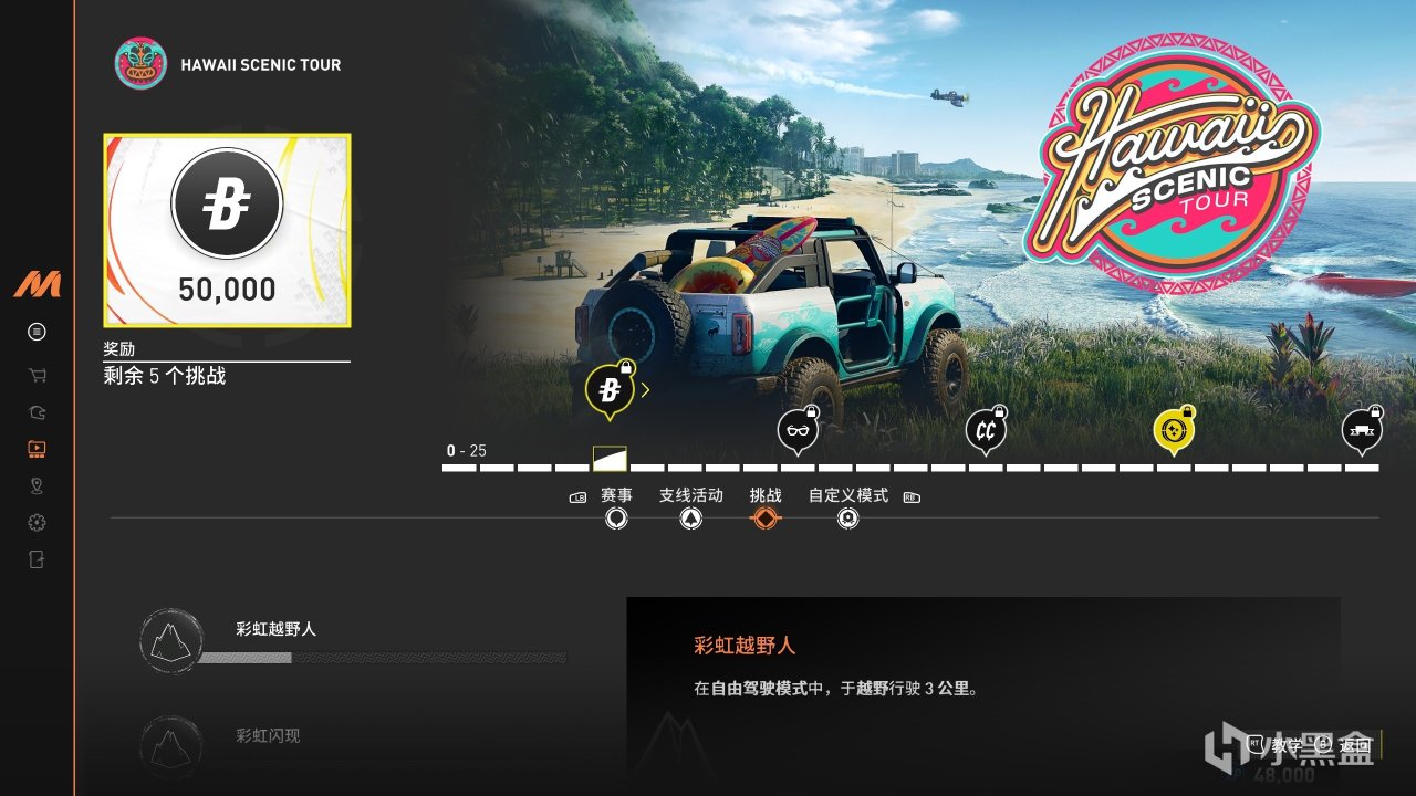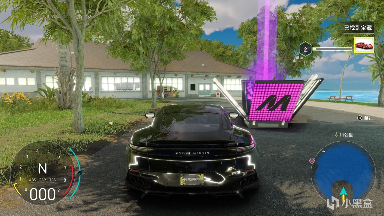 除了跑图和游戏场景之外,《轰鸣盛典》比较让笔者惊喜的应该还是地图上那些潜藏的可交互宝藏。随着玩家在游览欧胡岛的过程中,右下角的小地图圈可能会在某个时间发出嘀嘀嘀的闪光,那就代表此处有宝藏(我的徽章动了,这里一定有女术士!)。随着玩家靠近宝藏的正确方位,便可以在场景中找到这么一个宝箱,里面可能会有包括经验值、金币和车辆配件等一系列比较实在的奖励。