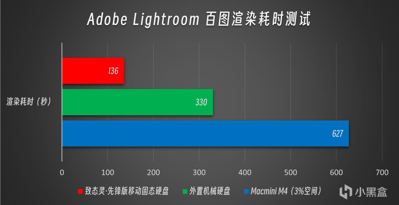 那麼實際場景體驗如何呢?我們藉助 Adobe Lightroom 和 Davinci Resolve 單獨測試下,因爲內置的空間已經所剩無幾,所以對照組選用了移動機械硬盤、致態靈·先鋒版移動固態硬盤兩種。