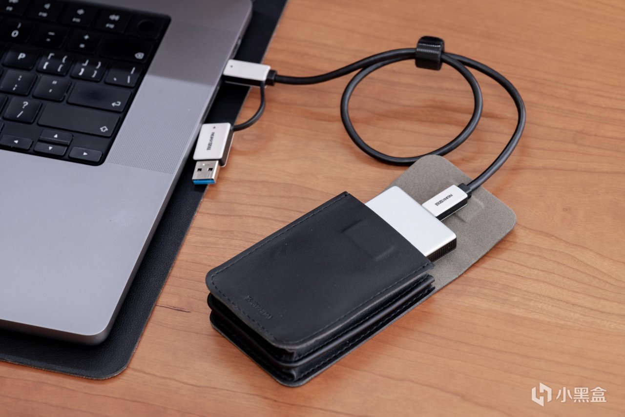 不管是放在褲兜裏亦或是小包裏都是相當的方便,而且官方也配備了一個磁吸收納包,剛好一層放線一層放硬盤,不用擔心裸盤放在包中被劃傷了。