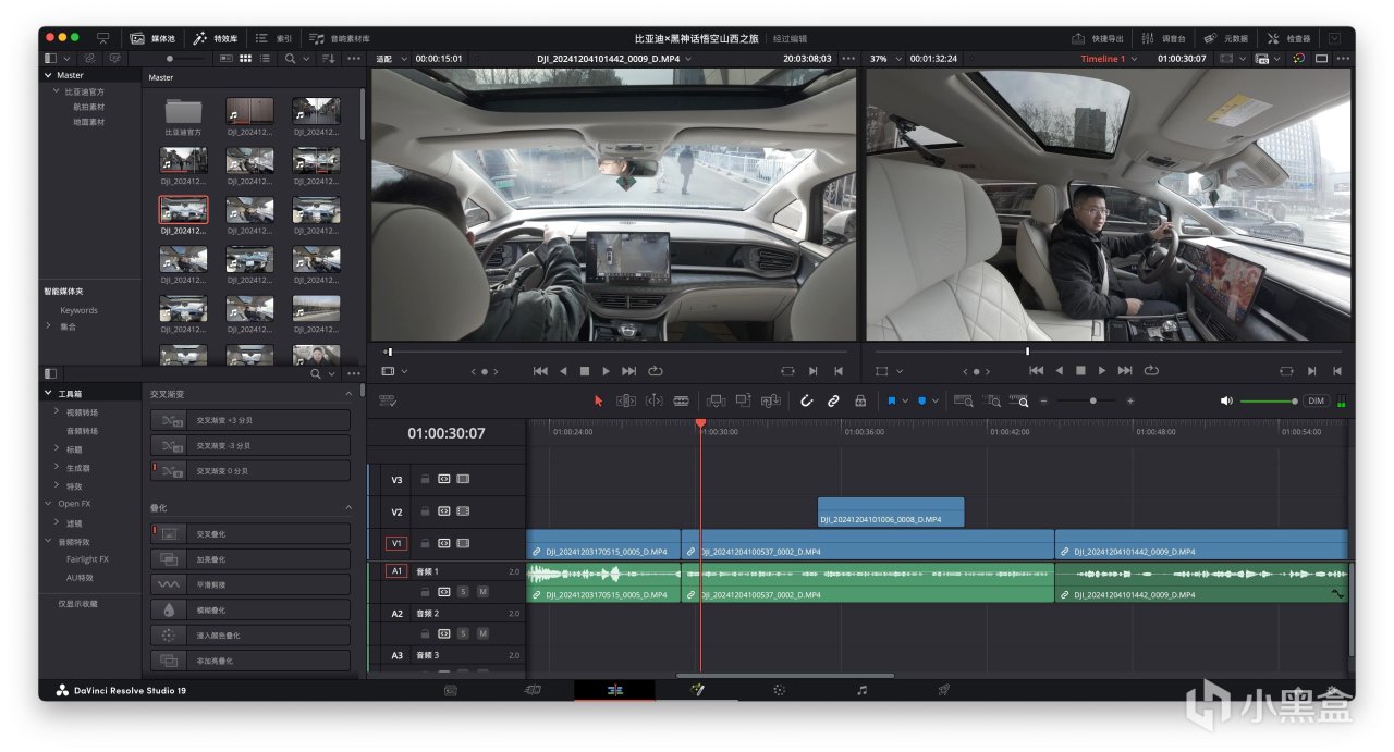 然後我們將這 410GB 的素材導入達芬奇中進行剪輯和特效處理,從導入視頻素材→拖入視頻軌道→剪輯視頻片段→加入特效預渲染→最終渲染視頻的每一個環節,都非常考驗硬盤的性能表現。致態靈·先鋒版移動固態硬盤的性能和體驗,與內置存儲幾乎一致。而機械硬盤在此過程中的表現就不那麼盡如人意,如果大量的時間耗在素材的導入渲染上,剪輯熱情可能一下子就磨沒了。