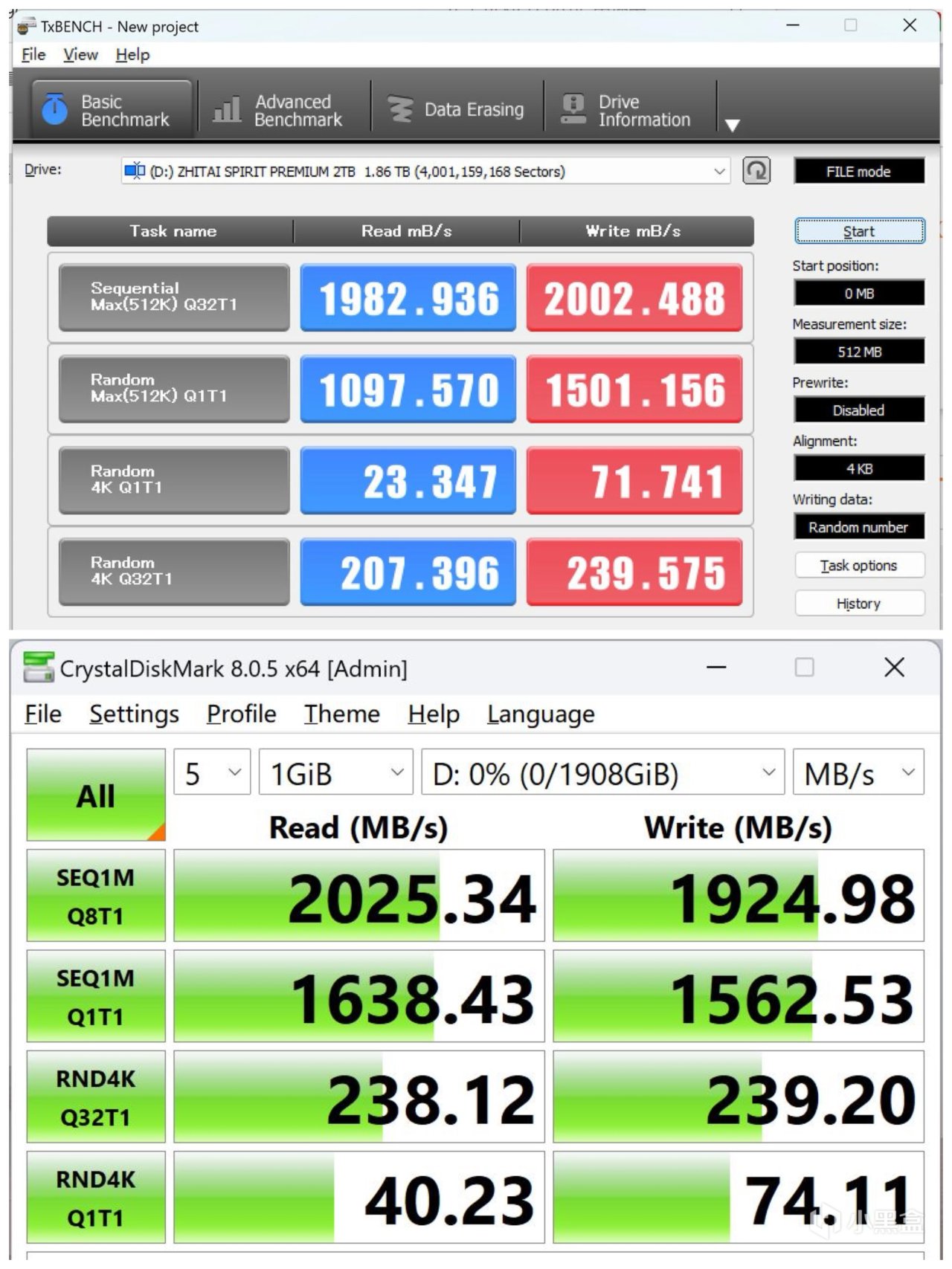 由於前面提到的接口限制,以上性能遠不是致態靈·先鋒版移動固態硬盤的全部實力,如果你把它插入 Windows 電腦的雷電端口後,順序讀寫 2000MB/s,隨機讀寫 1500MB/s 纔是它的滿血狀態。