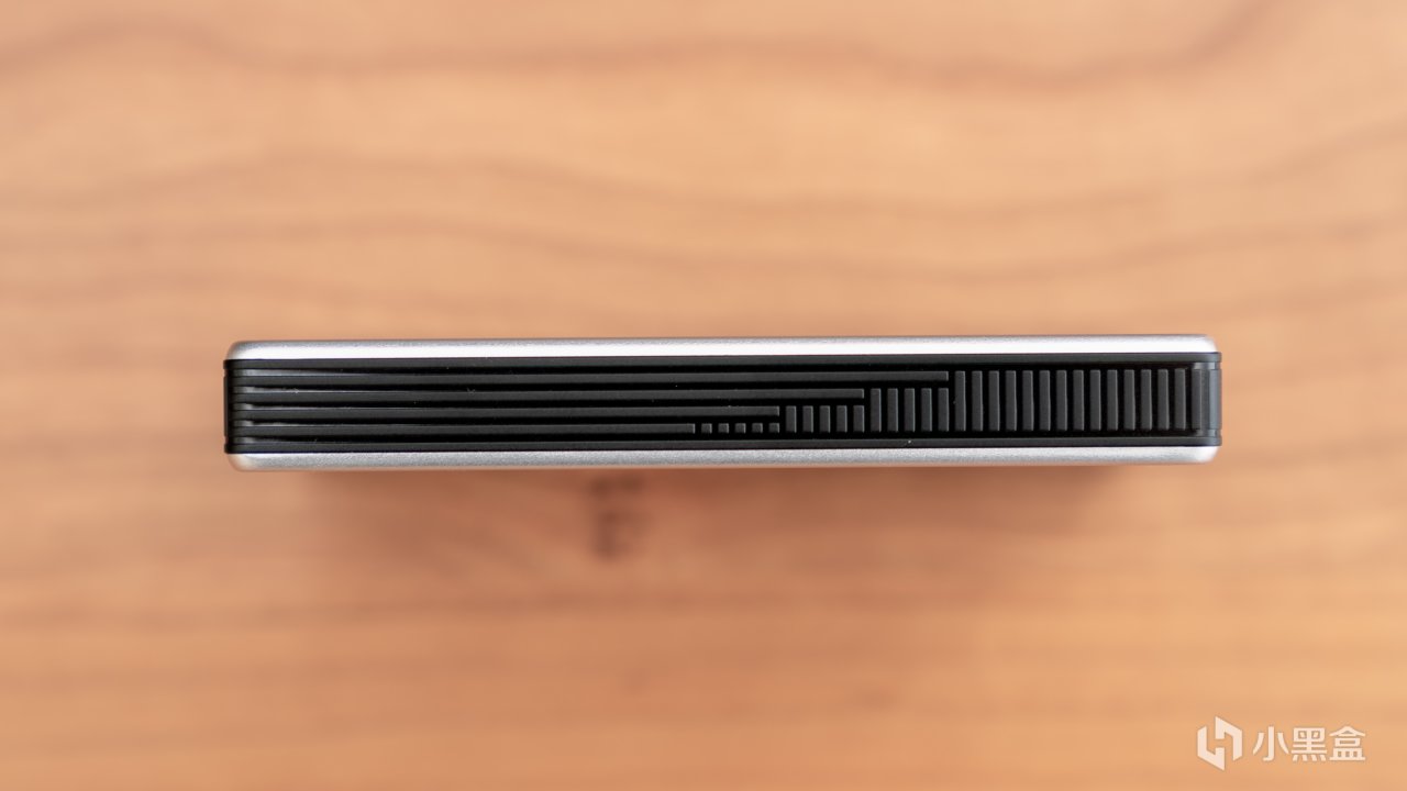除了性能優異外,這塊硬盤的外觀設計也是頗具巧思。在結構方面,硬盤採用了三層夾心結構,硬盤的上下兩層均是銀色的金屬材質,表面有致密的噴漆,觸感細膩。