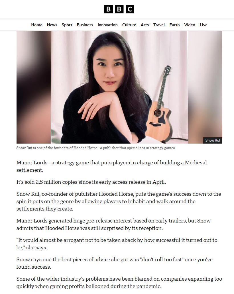 近日在接受BBC采访时,Hooded Horse的联合创始人Snow Rui解释说,尽管公司在发行前进行了营销并播放了预告片,但《庄园领主》的反响仍然令公司感到意外。Rui说:“如果说对它取得的成功不感到惊讶,那简直就是傲慢。”