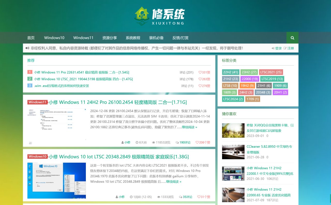 汇集了各种精简系统作品,包括极限精简、适度精简、轻量优化和极限优化等版本。可以免费下载、测试和交流这些系统。