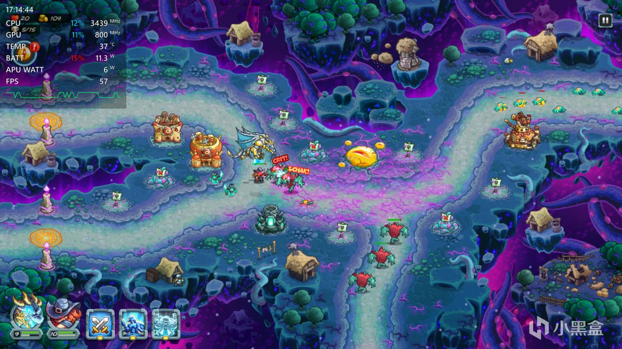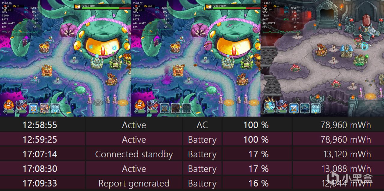 以 王国保卫战5 为例,测试条件为静音模式,但Win电源模式并没有更改,依然为平衡。亮度为200尼特,联网。