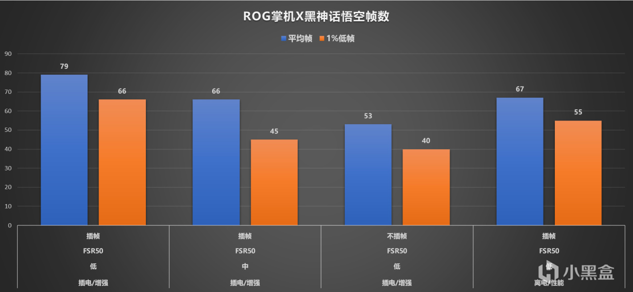 以黑神话悟空为例,1080P低画质,FSR采样清晰度为50,开启帧生成,平均帧为78,1%low帧为65.8
