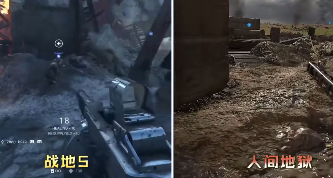 而且遊戲在氛圍營造上也是做的非常好,精細的建模幾乎是其他同類型遊戲完全無法比較的,比如網上視頻比較戰地和人間地獄,其實畫面清晰度和動作上是有差距的,但細節上人間地獄一定是更加貼近現實的,這種氛圍光影,讓他帶給玩家的體驗能跨越時代
