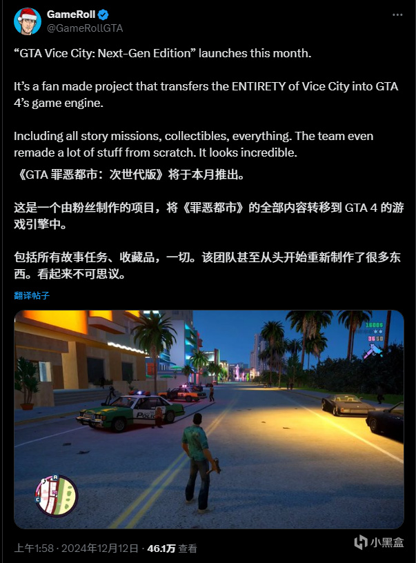 這是一個由粉絲製作的項目,他們將《罪惡都市》的全部內容轉移到《GTA4》的遊戲引擎中