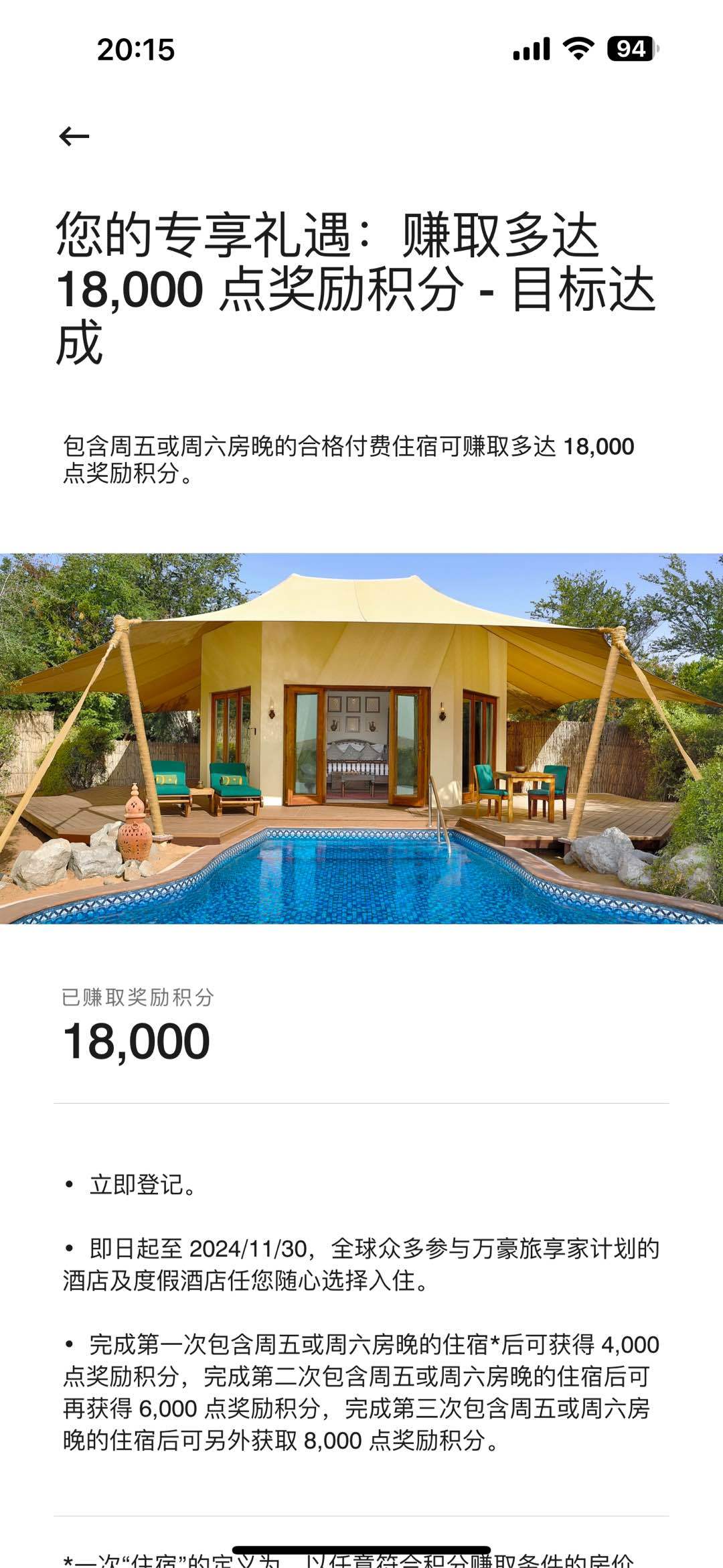 萬豪每個季度會推出不同的住宿任務,以及隨機發放一些“狗託任務”給用戶,以我上個季度收到的真神任務來舉例: