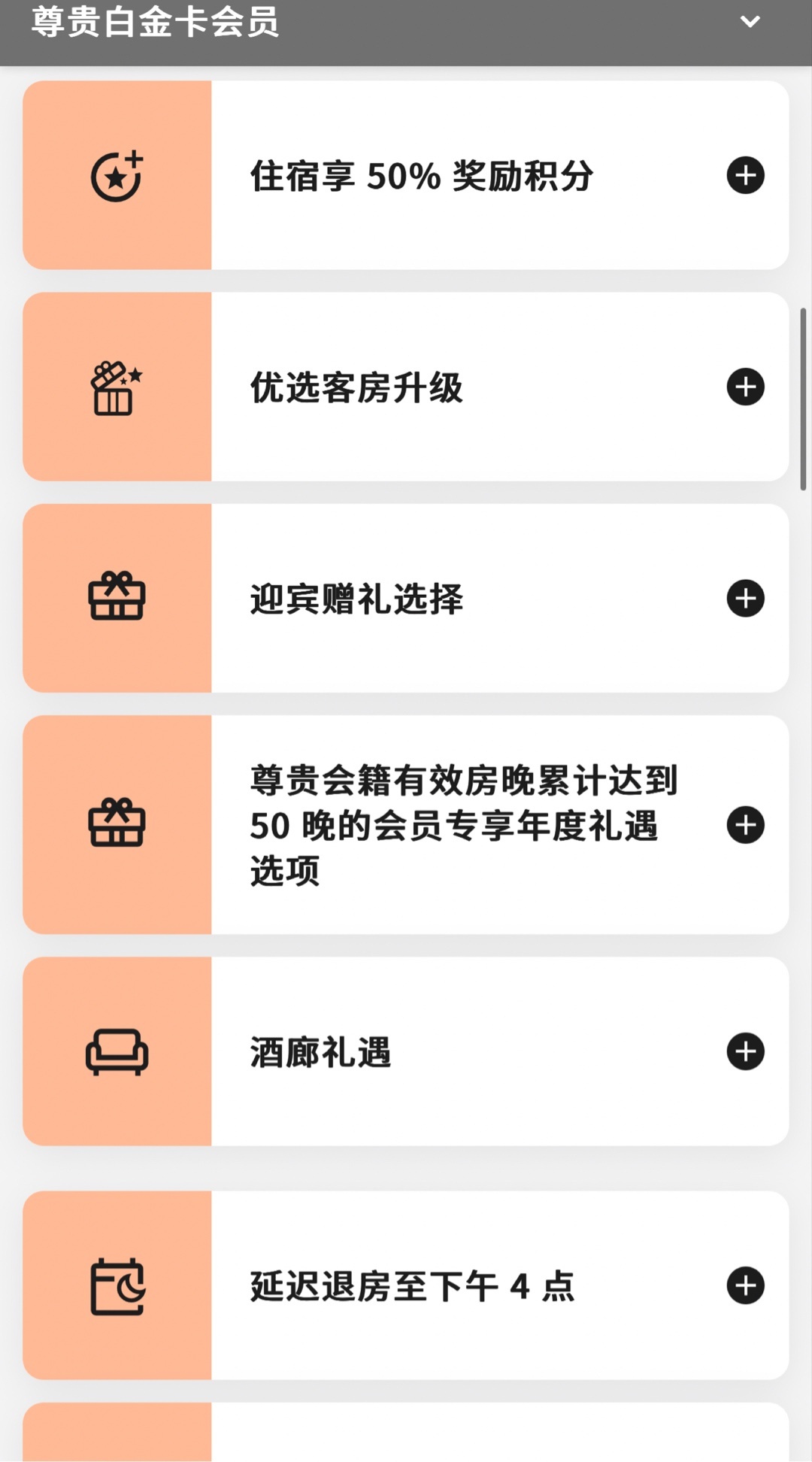 如果你是飛豬F4的用戶(每年消費在2000即可,且飛豬有很多一鍵升F4的活動,總成本在幾百就能搞定這裏就先不展開說了)那麼恭喜你獲得了最推薦的白金挑戰,這是因爲飛豬的白金挑戰是自帶白金權益的!⚠️沒錯!你在挑戰的時候已經擁有了免費早飯、延遲四點退房、行政酒廊等權益了。