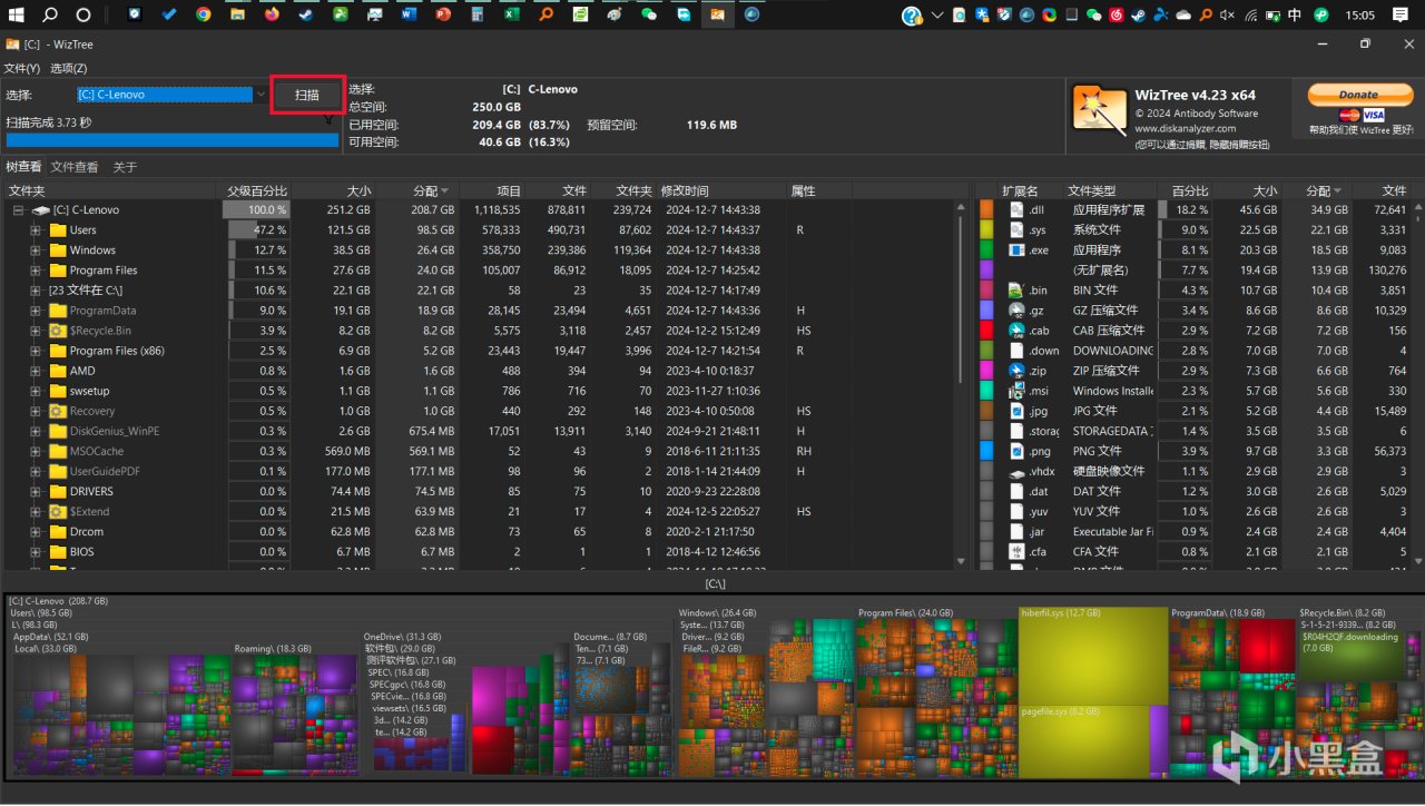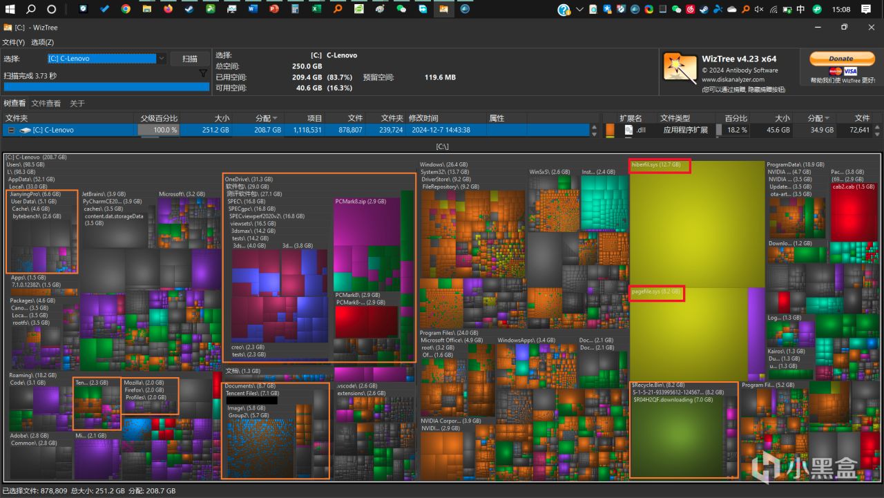 想知道自己C盤爲什麼被佔用了很多空間,到底是什麼喫了空間,可以用一下 WizTree 這個軟件,比 SpaceSniffer 更快也更好用,能夠以可視化的方式看到你C盤到底塞了什麼東西。