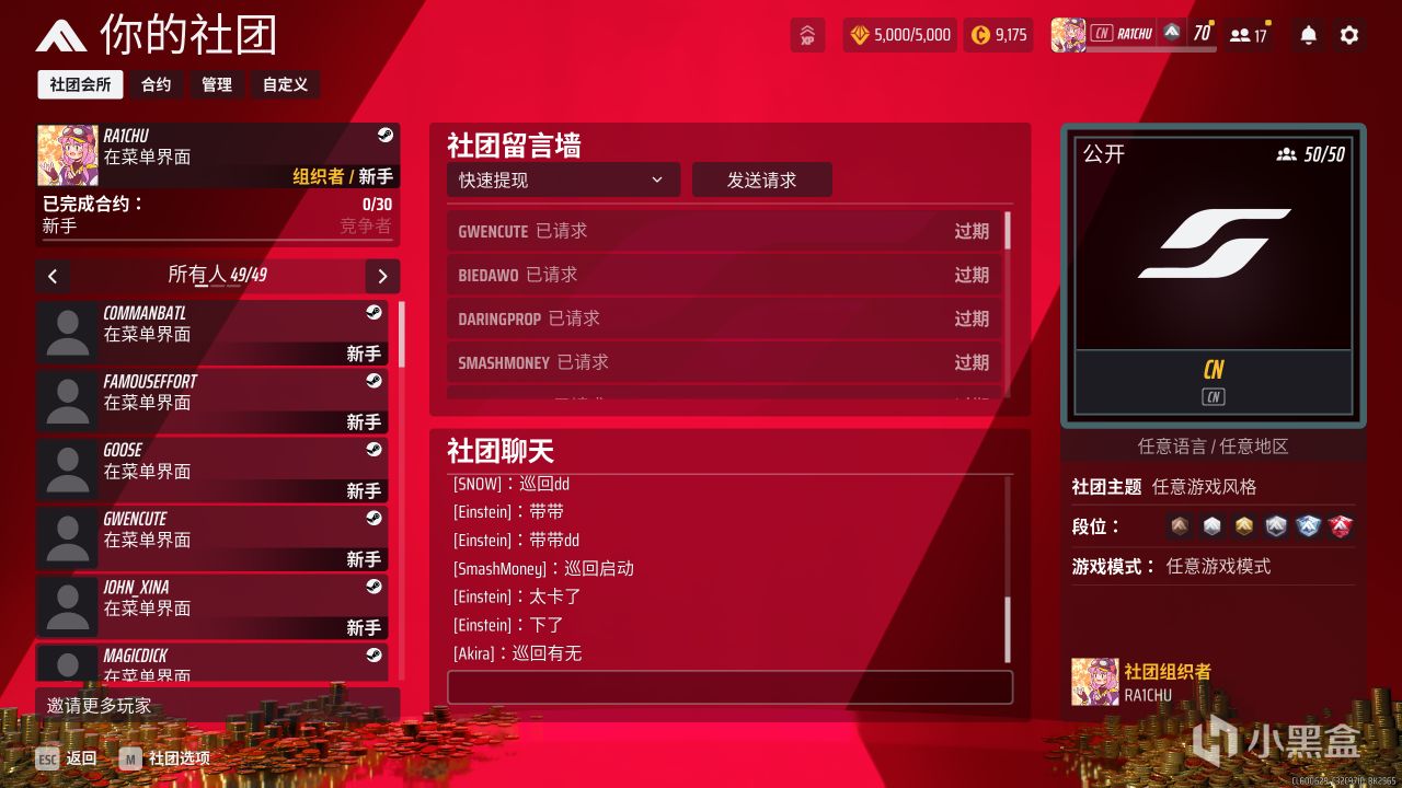 每个社团最多可以有50名成员,并拥有独特的名称和标签,在竞技场中脱颖而出。通过角色分配来组织团队: