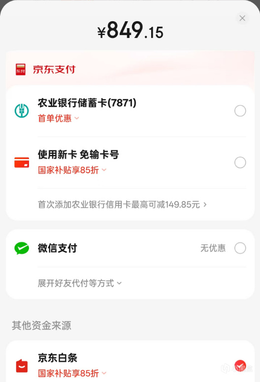 【浙江国补】:收货地址为浙江省的用户,选择参加国补商品—立即购买—立即支付—选择【银行卡/白条】支付,即可享受优惠~