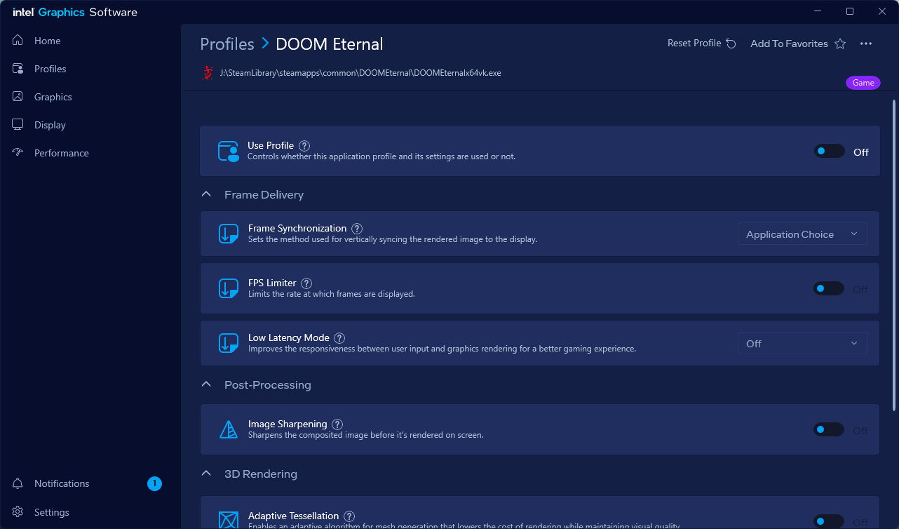游戏领域值得一提的还有英特尔重新设计了控制中心,包括重新设置了界面,加入了针对不同游戏的独立设置选项,包括针对DX9和DX11的降低系统延迟选项,图像锐化等设置。界面非常直观明了。