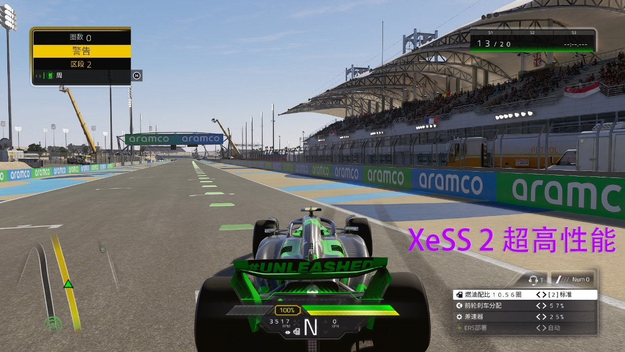 这里着重使用已经实装XeSS 2的《F1 24》进行尝试。可以看到,在游戏设置中可以找到开启XeSS 2的选项,这里需要注意需要将VRS关闭。