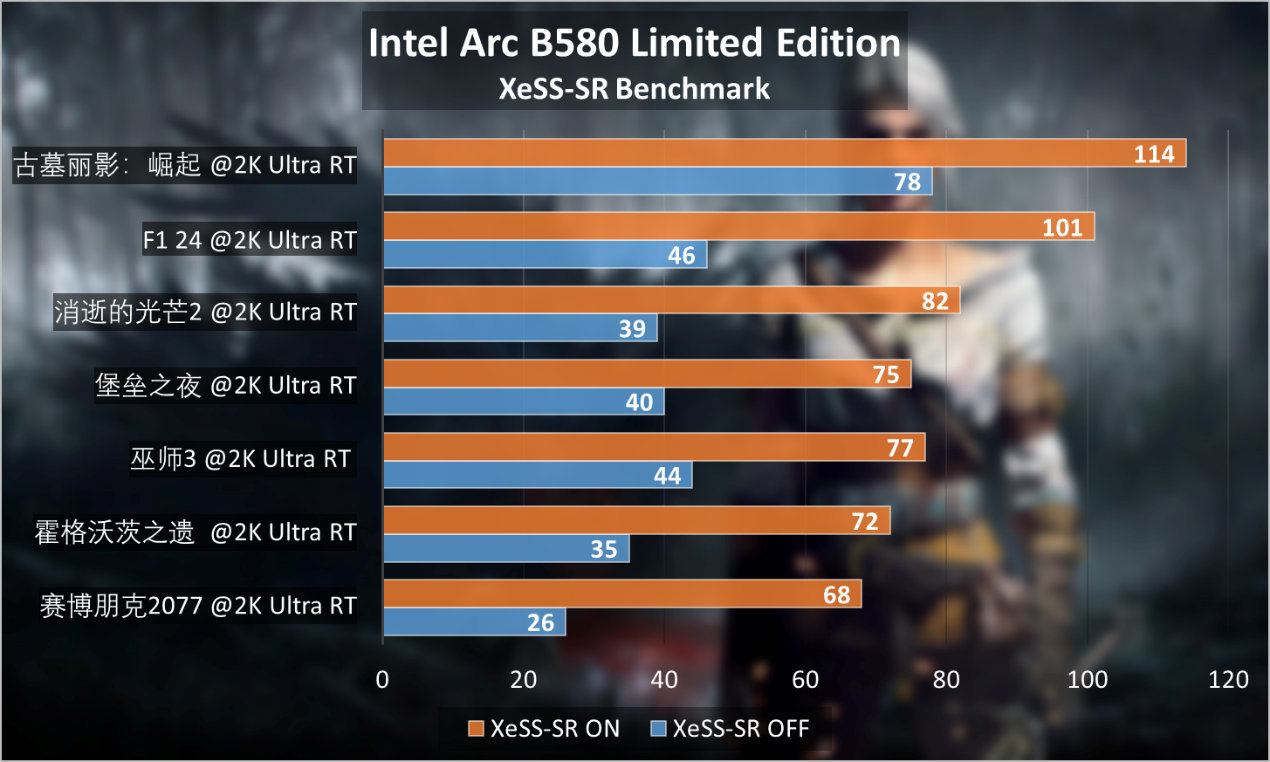 显然只用Intel Arc B580 Limited Edition处理1080p画质未免太过浪费,特别是今年开始2K分辨率显示器,乃至2K OLED显示器蓬勃发展都证明了玩家对沉浸游戏体验更高的要求。