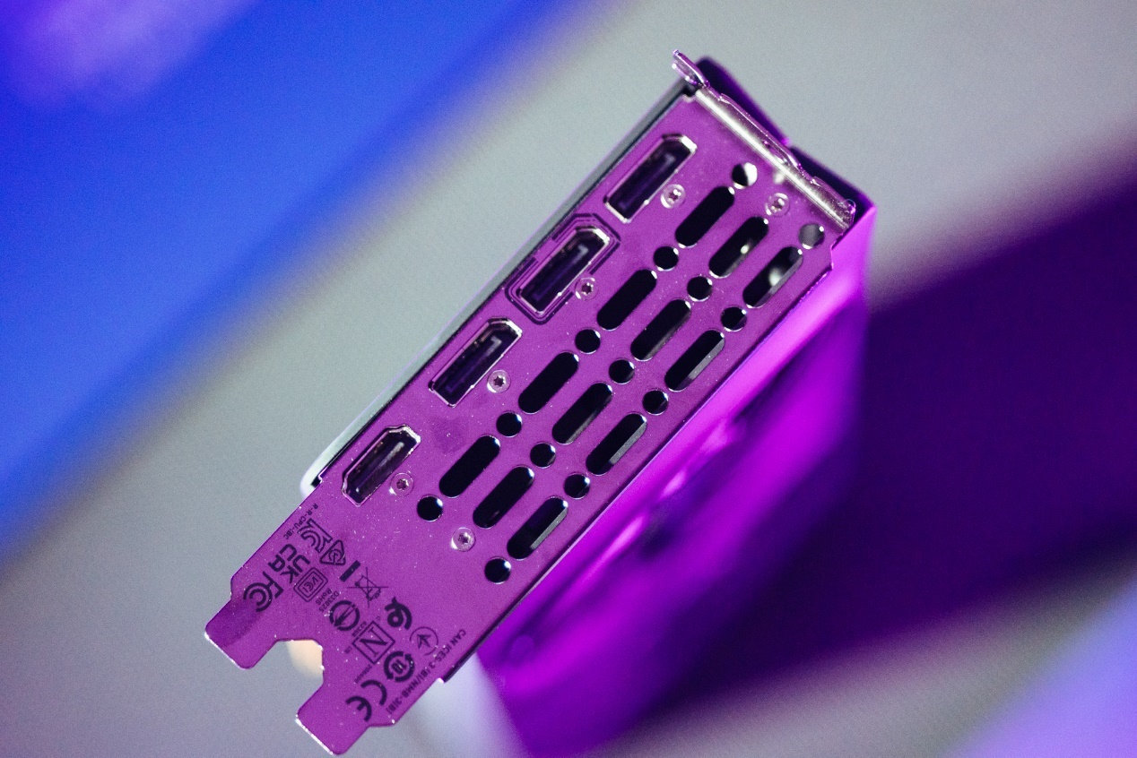 接口部分,Intel Arc B系列提供1个HDMI 2.1a接口,以及3个DisplayPort 2.1接口,其中由上到下第二个DisplayPort 2.1接口最高可支持8K 60Hz或者4K 360Hz输出,所有接口同时输出支持4K 120Hz HDR高分辨率输出。