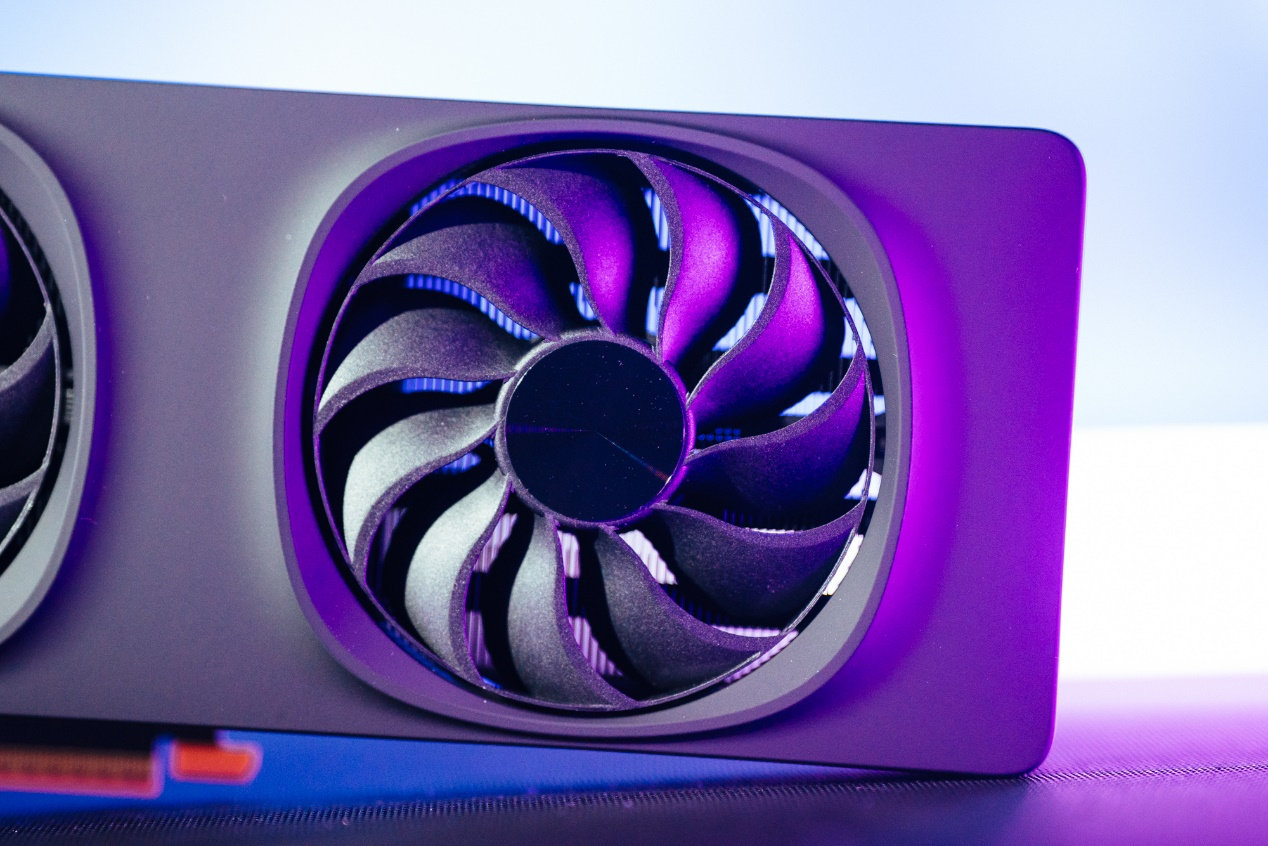 另外显卡的两个风扇也提升了运行性能和声学表现,可以相对上一代Limited Edition的风扇增加了30%的气流,整体噪音降低50%,是目前为止英特尔制造出来最快且最安静的Arc显卡。