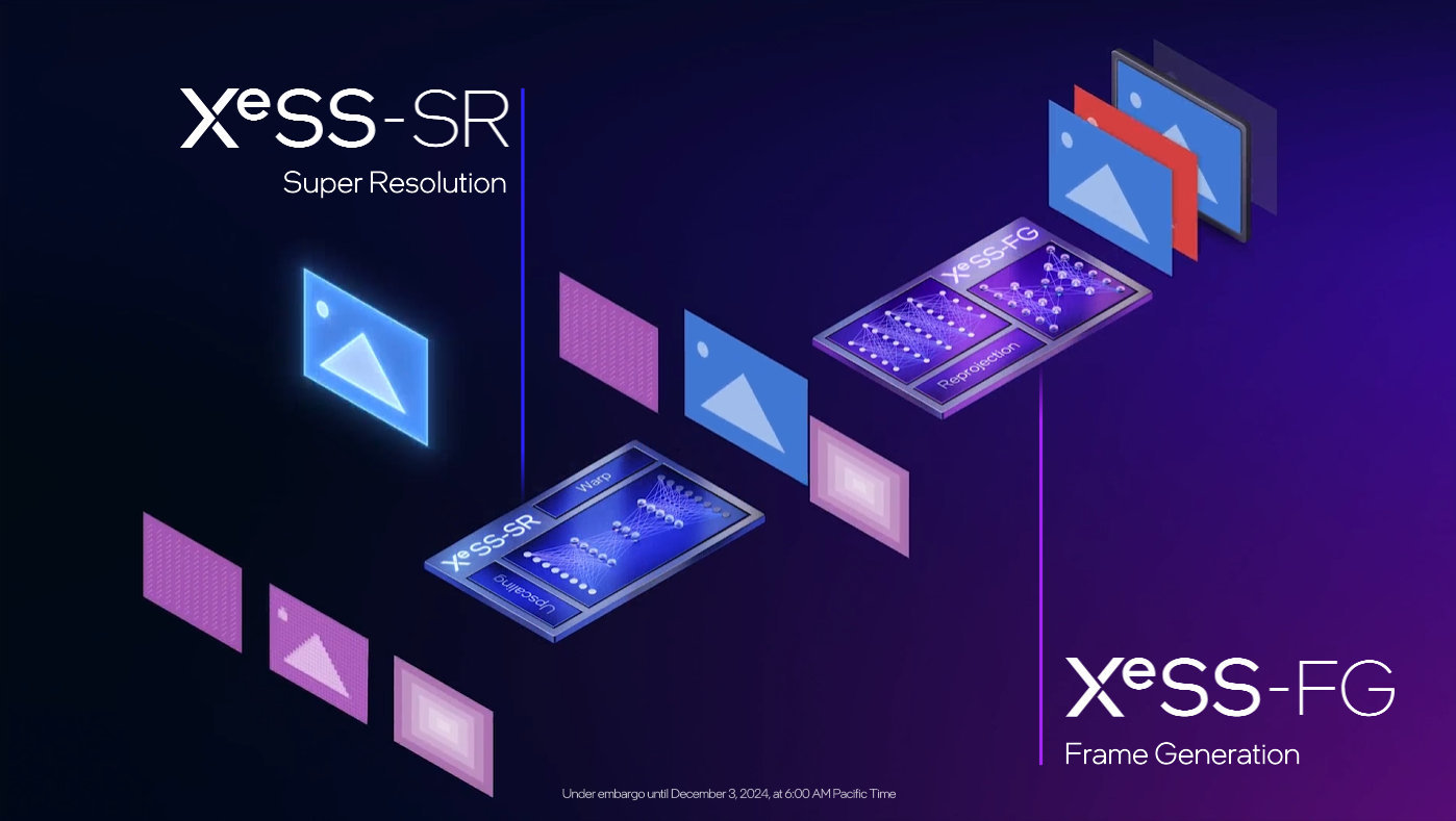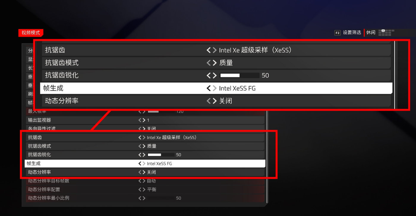 因此在工作模式中,会先由XeSS-SR实现游戏超分,以降低GPU负荷和提升游戏帧率,然后再通过XeSS-FG实现帧生成。