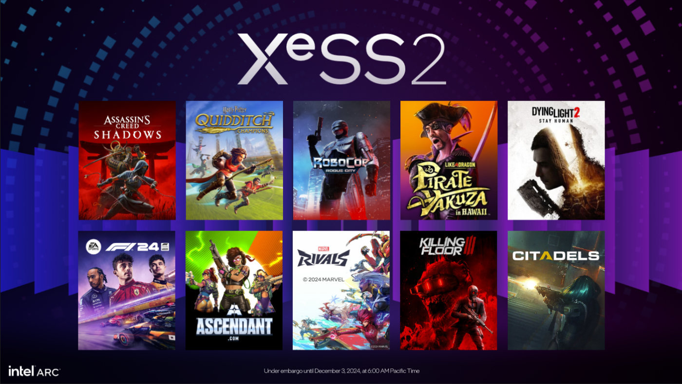 英特尔表示XeSS 2 API植入非常方便,无需增加游戏制作太多工作量。不过与DLSS 3以及DLSS 3.5发布时候类似,实装到测试多少会需要一些时间,但从现在宣布支持XeSS 2的10款游戏而言,含金量是不少的。例如包括育碧的《刺客信条:影》,网易的《漫威争锋》,以及《消逝的光芒2:人与仁之战》。