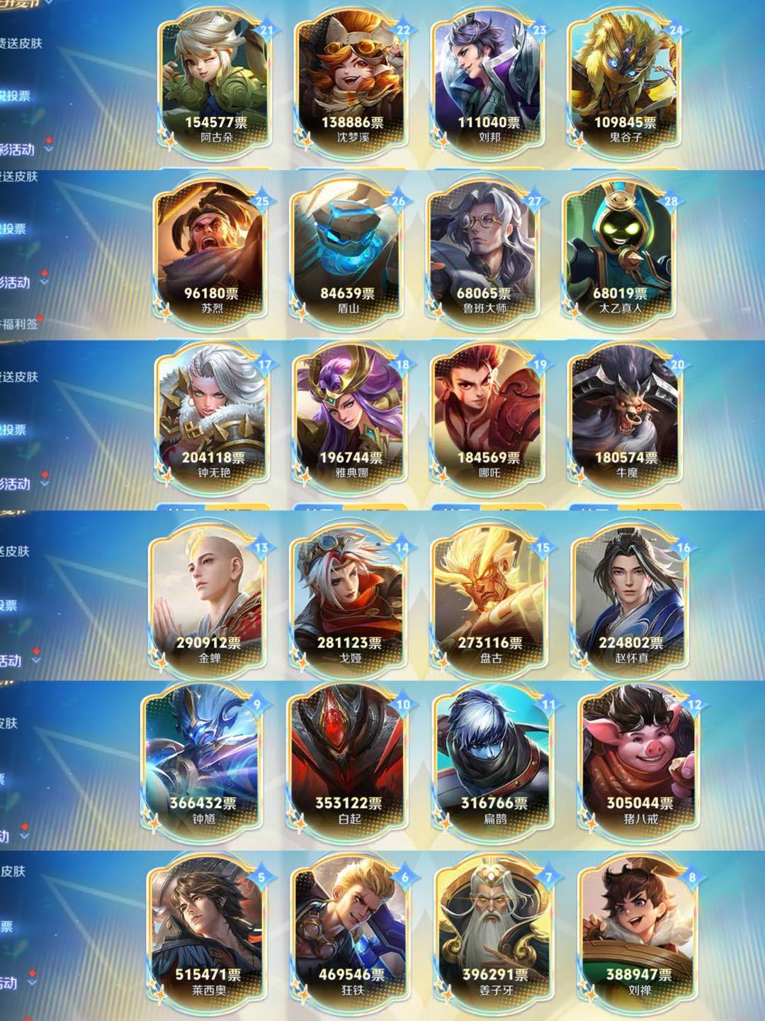 看了一通好像輔助的票數,感覺都有點低啊,大家今天都投給哪個英雄了啊?