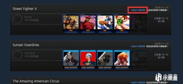 对于那些买断制的游戏,掉落数量为一套总数量的一半(向上取整),而且可能会掉落重复卡牌。比如某个游戏的全套卡牌有5张卡,那随着你玩这个游戏总共可以掉3张,这3张里面可能有重复的卡牌。