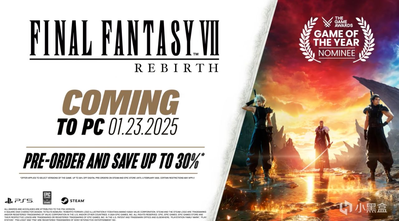正式宣佈登錄PC平臺,繼續末知的旅程。克勞德一行人脫離魔咣都市米德加,跨越命運之牆,邁入未知的荒野旅程。《最終幻想7:重生》將於2025年1月23日登陸PC平臺,在2025年2月6日之前於steam、Epic平臺預購可獲得7折優惠。