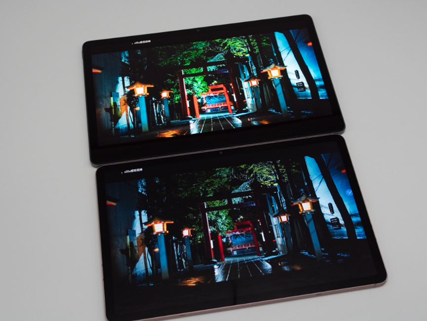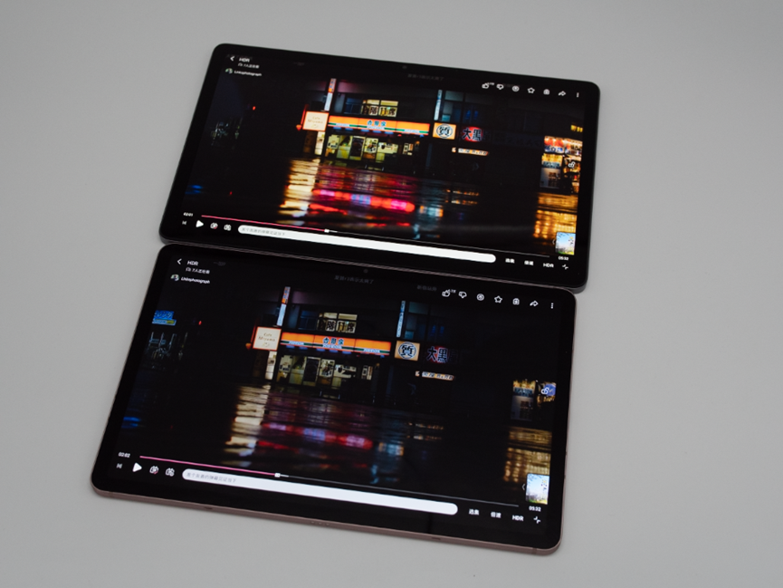 一台是OLED屏幕的小新Pad Pro 2022,另一台则是LCD屏幕的三星Tab S7。