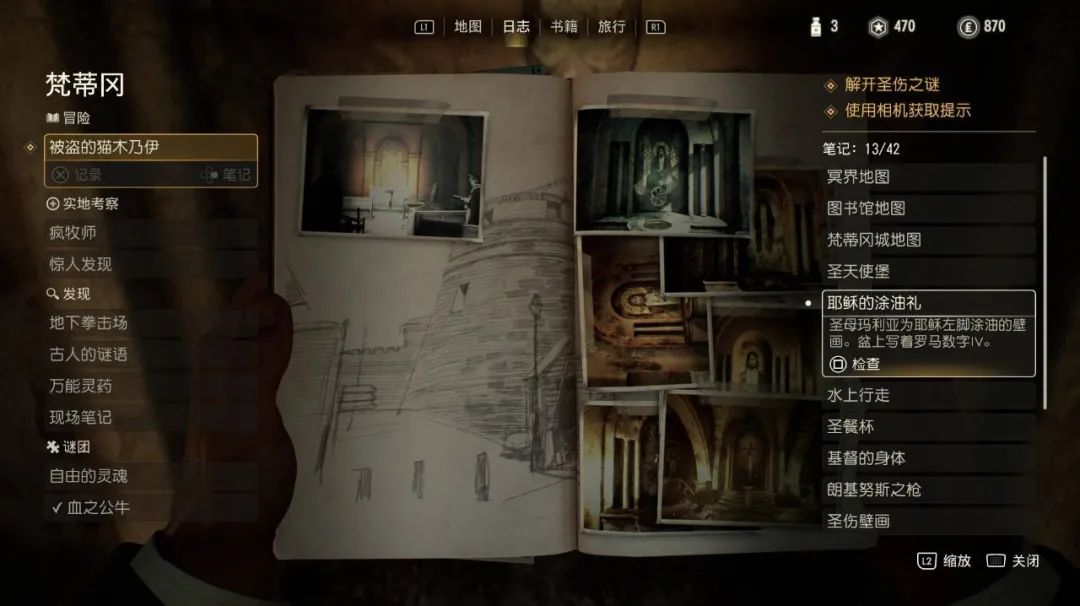 收集到书籍后,玩家还需要用冒险点数购买才能解锁技能。每当玩家完成任务、解谜、拍照、收集文档后都可以得到一定量的冒险点数。不过因为游戏对成长的要求不高(除非你偏好频繁正面交战),即便通关时我有超过一半的技能书没有收集到,面对敌人时也仍然游刃有余。