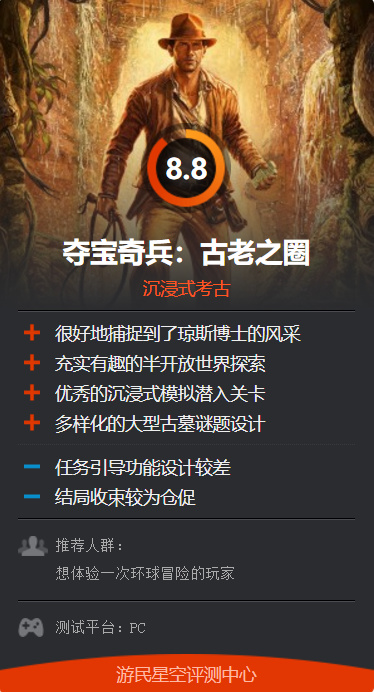 《夺宝奇兵:古老之圈》游民评测8.8分