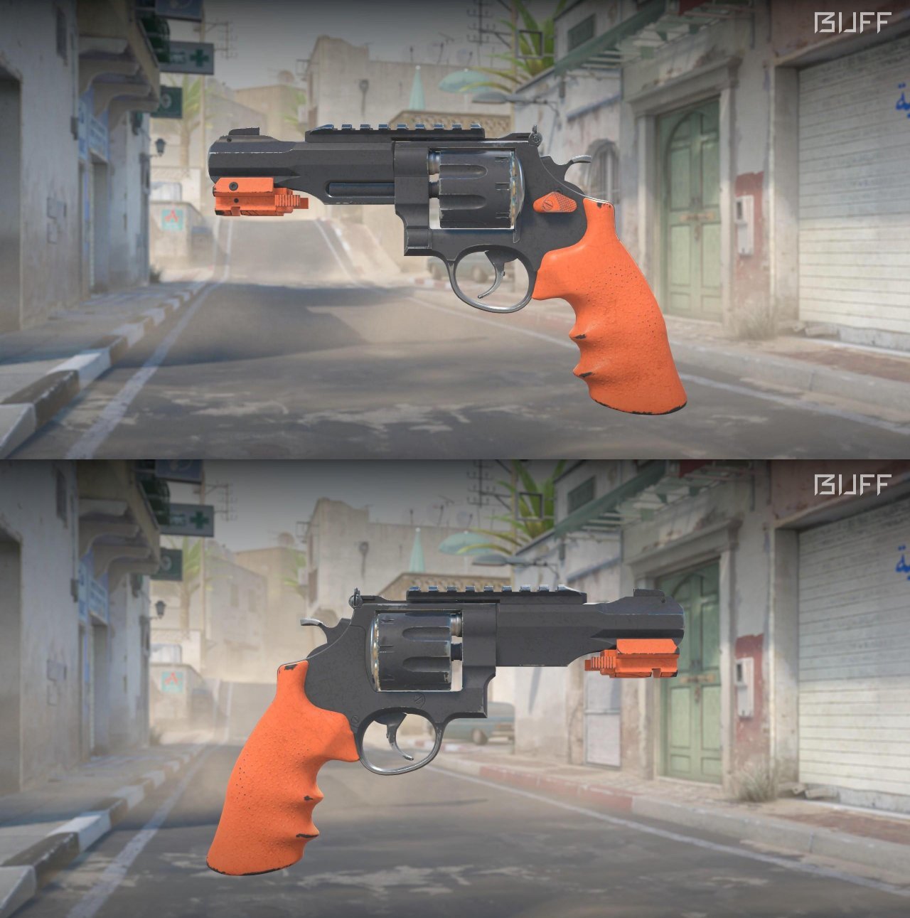 一款系列皮肤,枪身为黑色,握把为橘色,很简单的配色,但颜值却不低,很耐看,不是很吃磨损,推荐久经入手