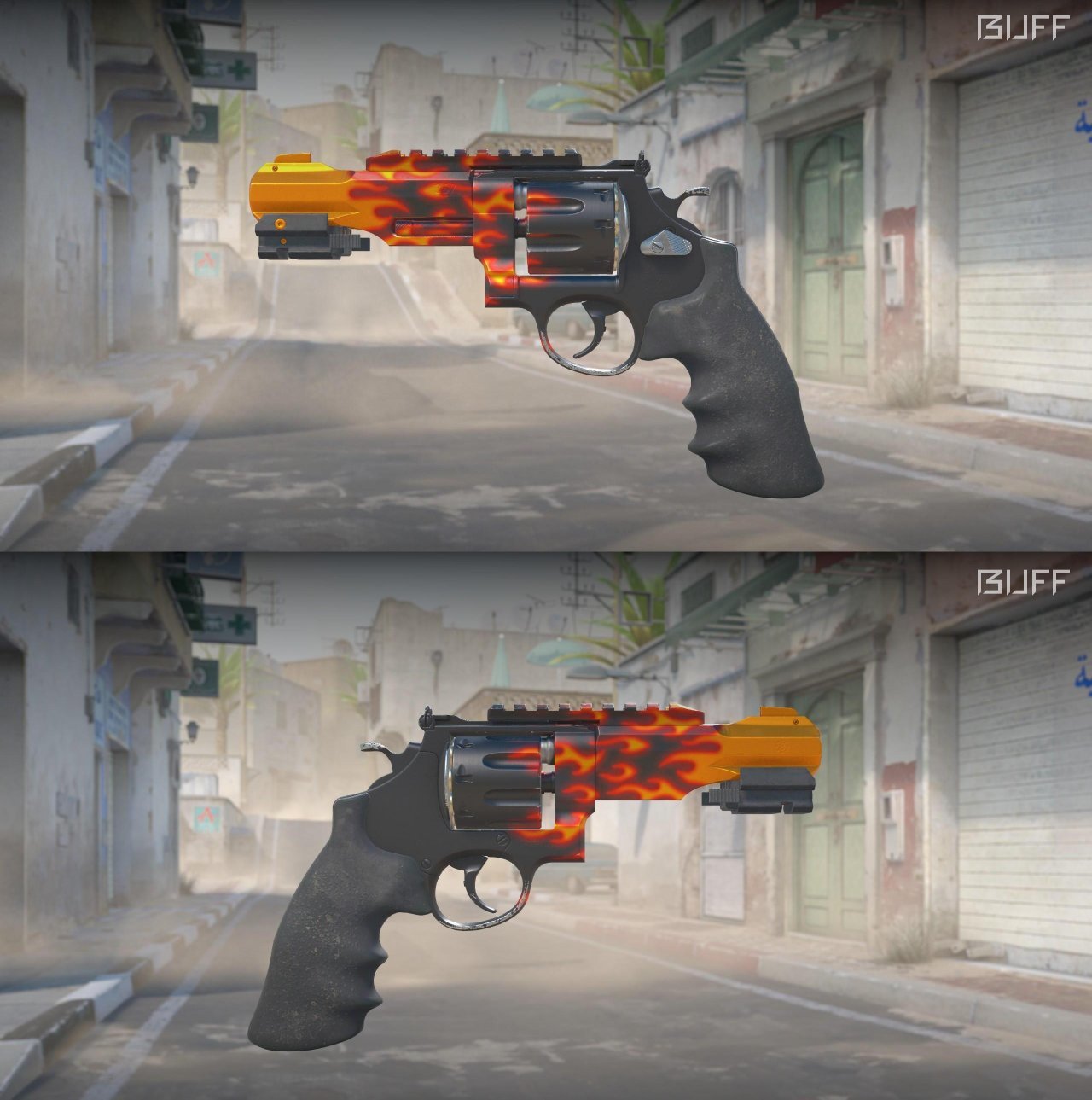 枪身为黑底,枪口处是燃烧的火焰,散发着一种“午时已到”的气质,局内效果很不错,一共就崭新和略磨两种,崭新还便宜一点,故推荐崭新入手