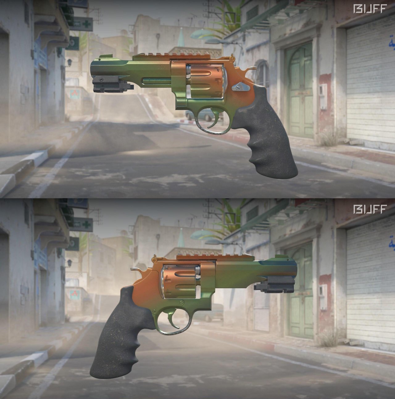同样是系列皮肤,这一款渐变是从橙向绿转变,金属质感还不错,很耐看,不是很吃磨损,推荐略磨入手