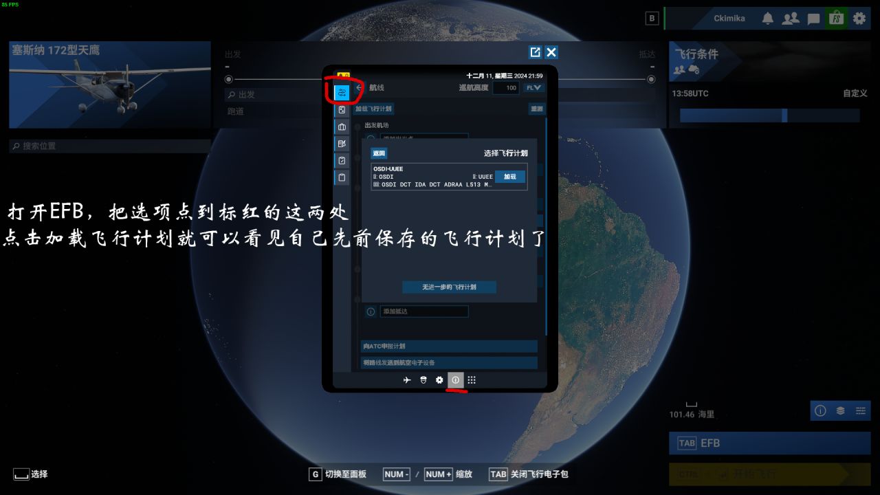 然后点击下面的“向ATC申报计划”和“将路线发送到航电”就可以准备起飞了,不过同步飞行计划并不会自动把飞机更改为你先前在网页选择的飞机,所以燃油载荷也不一定能马上应用到飞机上,就比如我图上的飞机是172,总不能载客量和737一样吧。