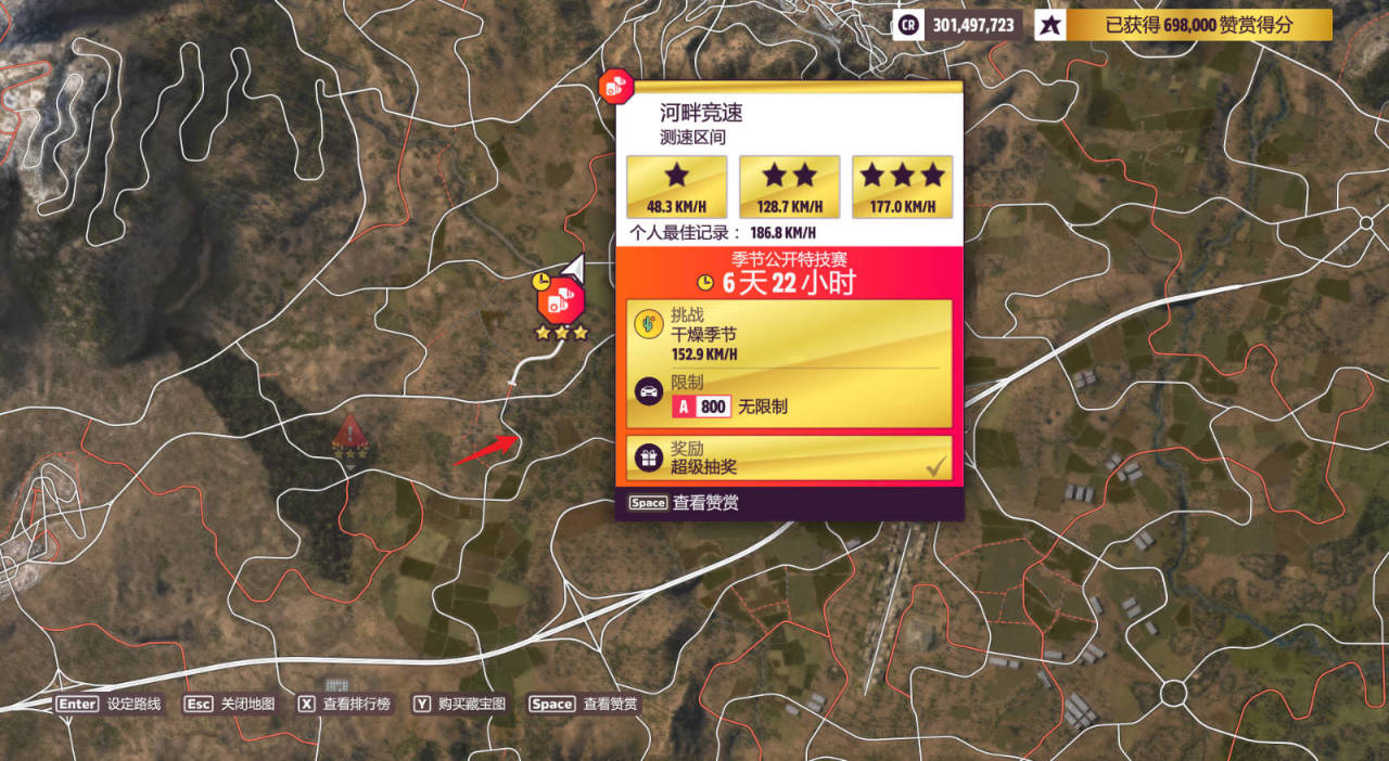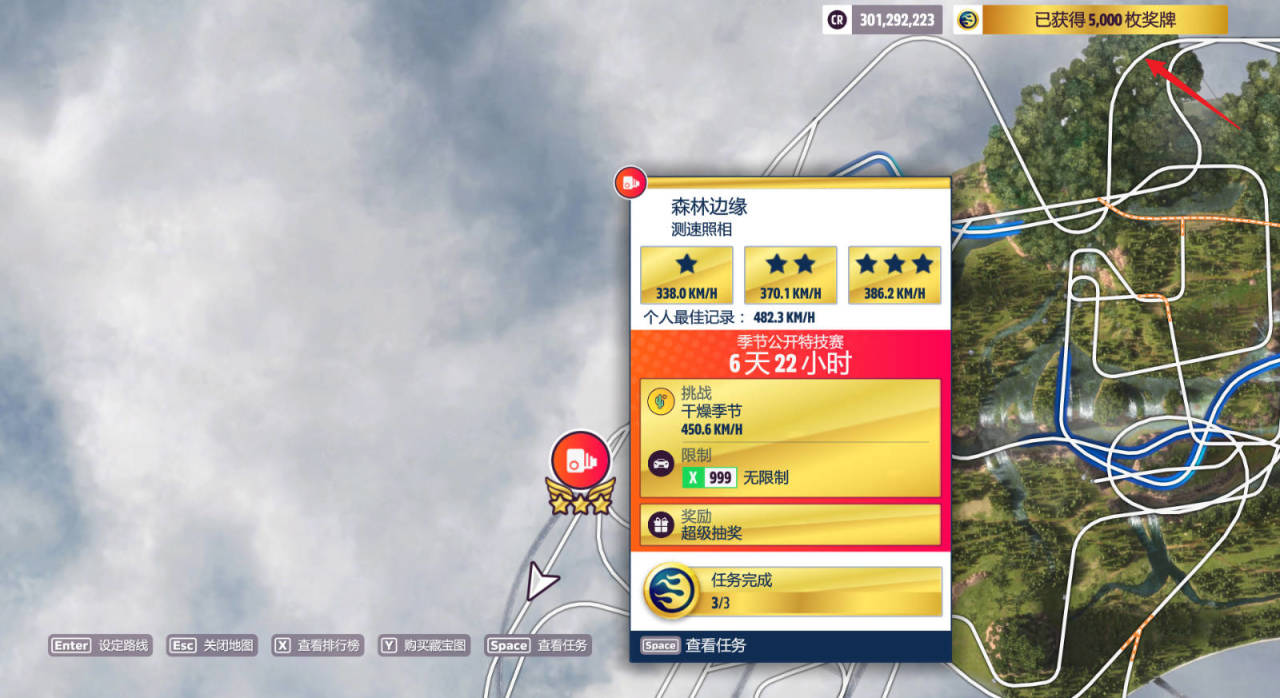 测速区间:河畔竞速,完成奖励为超级抽奖。(建议从下方入口进区间,是下坡,很简单)