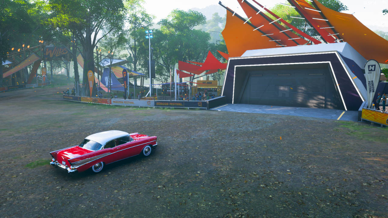 在祖地平线荒野前哨站拍摄任意BEL AIR(雪佛兰的车,可以用锦标赛三奖励车拍),位置如图,完成奖励为《铃儿响叮当》汽车喇叭