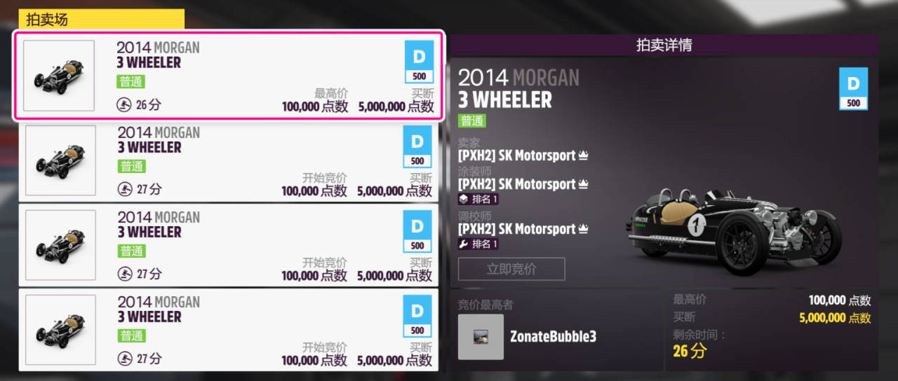 指定车辆为2014款MORGAN 3 WHEELER(风火轮锦标赛奖励车)