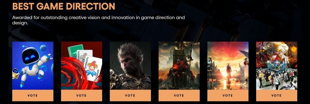 2024年11月19日,TGA公開了2024年遊戲提名,《黑神話:悟空》獲得四項TGA提名:最佳藝術指導、最佳動作遊戲、最佳遊戲指導、年度遊戲!