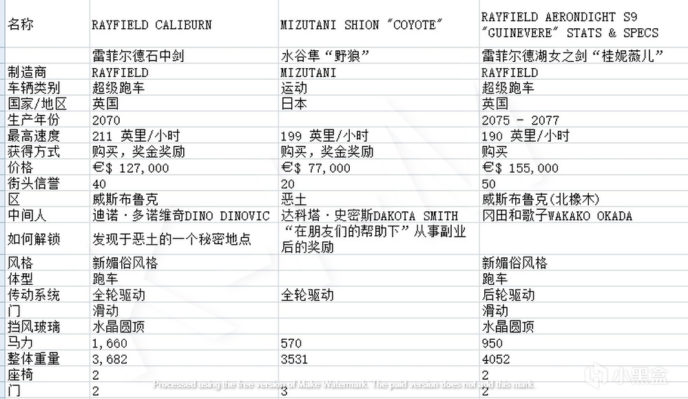 好了,下面是夜之城最快的車TOP3,因爲圖片很多,沒一起把排名放上來,後面慢慢更新.