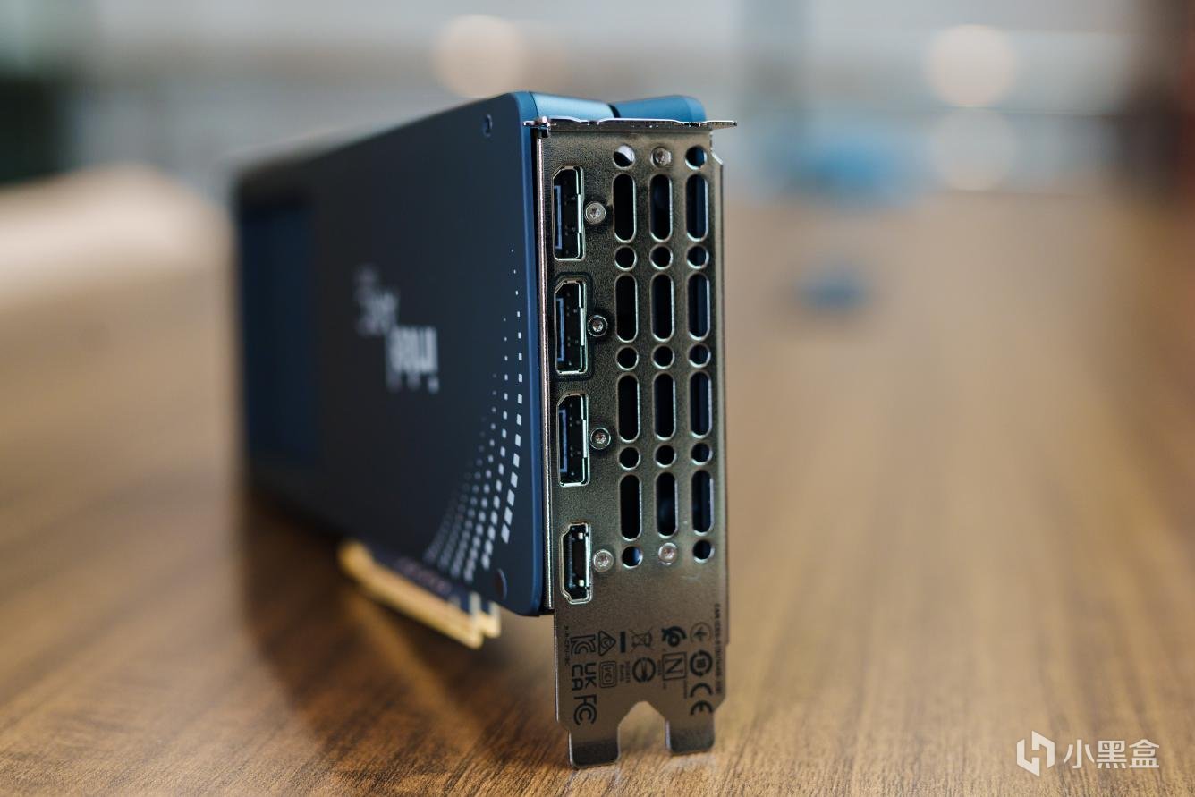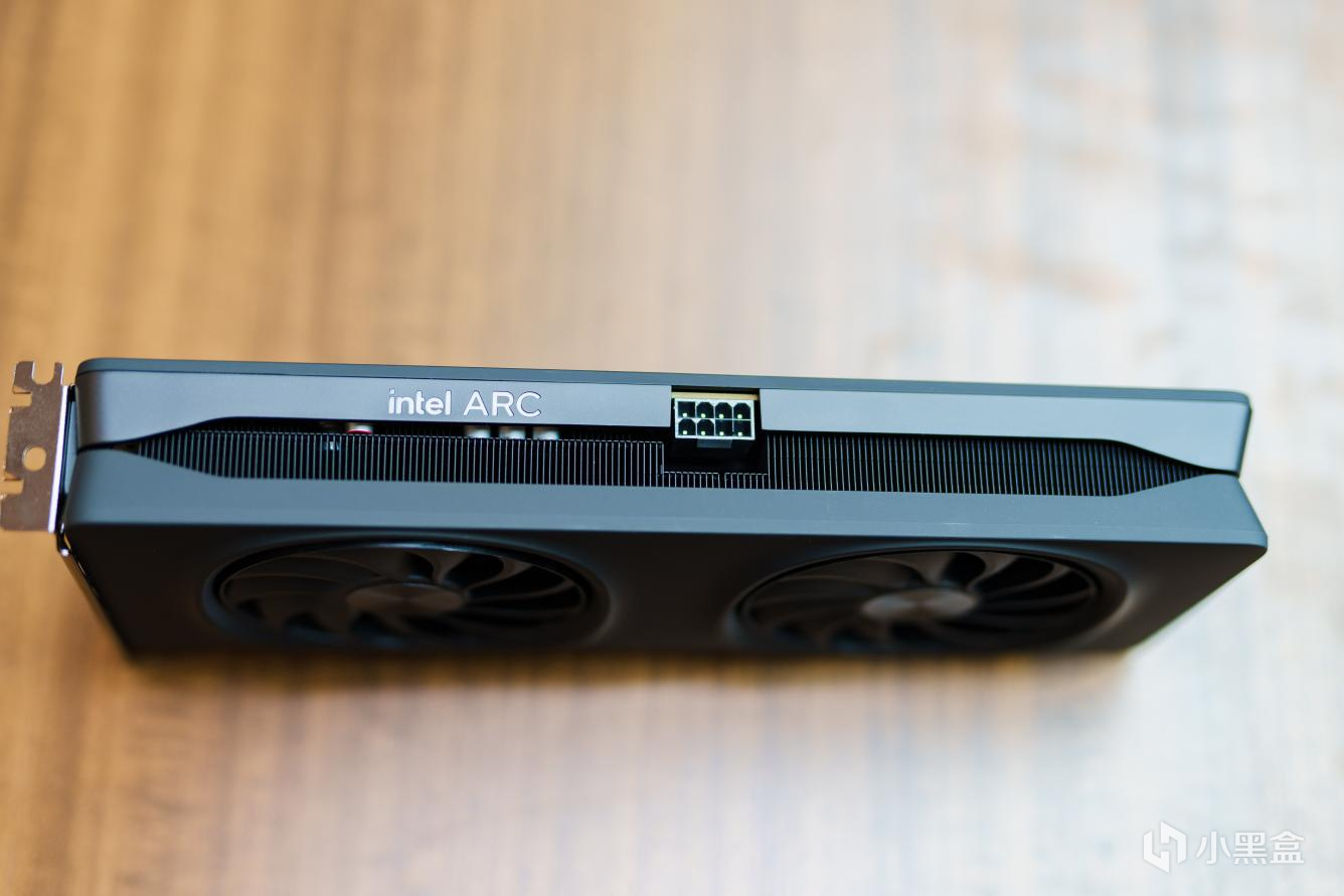 再來看看顯卡的接口,Intel銳炫B580 Limited Edition的電源接口是一個單8PIN的設計,因爲架構的升級和製程工藝的進步,所以全新的B系列顯卡功耗並不高,只需一個8PIN的接口即可滿足供電需求。