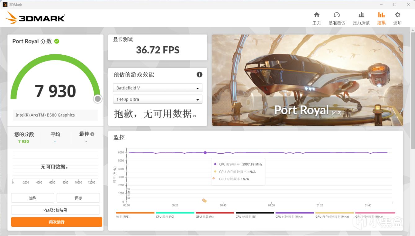 Intel稱第二代Arc顯卡在光線追蹤方面的性能也有着不小的提升,我們打開3D Mark的Portroyal測試,這是一個實時光線追蹤的渲染測試,結果顯示得分7930分,這個成績已經完全不輸於對手RTX 4060Ti了,在對手的強項光線追蹤方面,銳炫的B系列顯卡已經做到了平起平坐!
